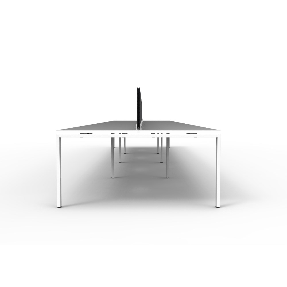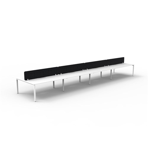 8 person double sided workstation with White top and White Satin frame, Black Eco screen.