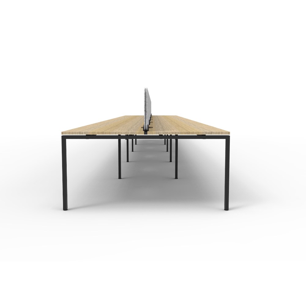 10 person double sided workstation with Natural Oak top and Black Satin frame, Grey Eco screen.