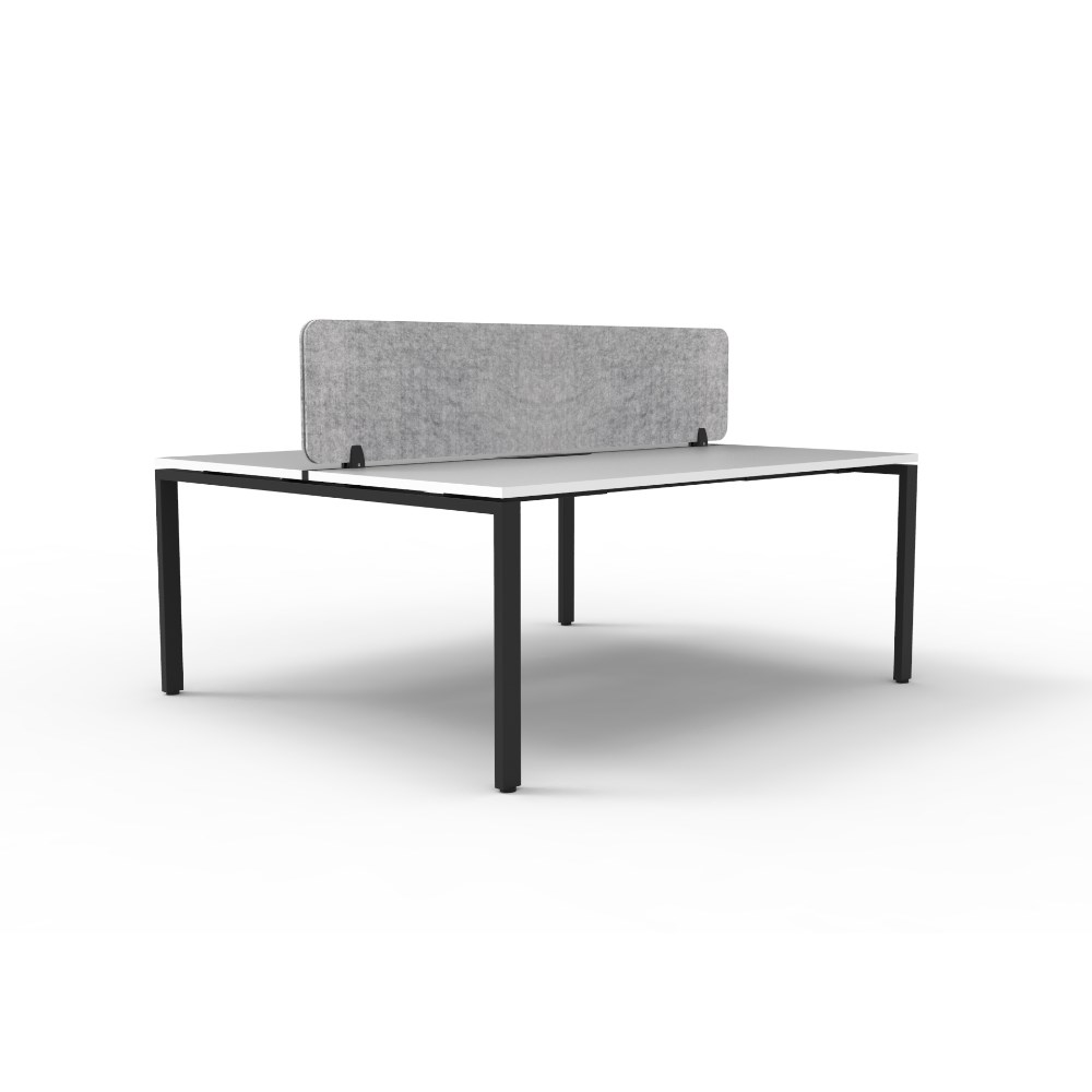 2 person double sided workstation with White top and Black Satin frame, Grey Eco screen.