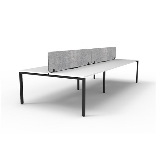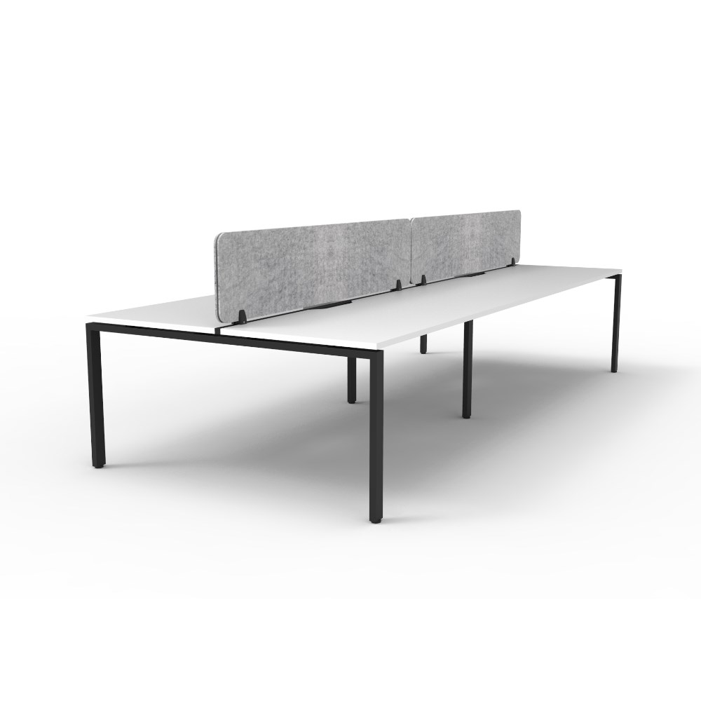 4 person double sided workstation with White top and Black Satin frame, Grey Eco screen.