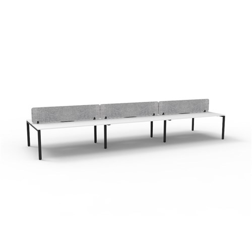 6 person double sided workstation with White top and Black Satin frame, Grey Eco screen.