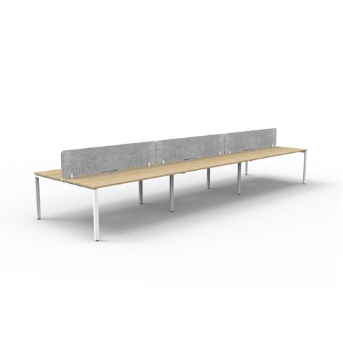 6 person double sided workstation with Natural Oak top and White Satin frame, Grey Eco screen.