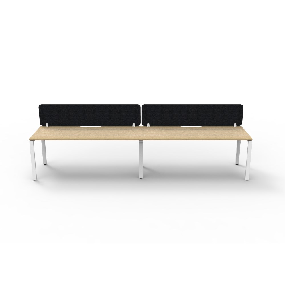 2 person single sided workstation with Natural Oak top and White Satin frame, Black Eco screen.