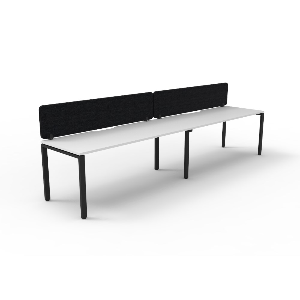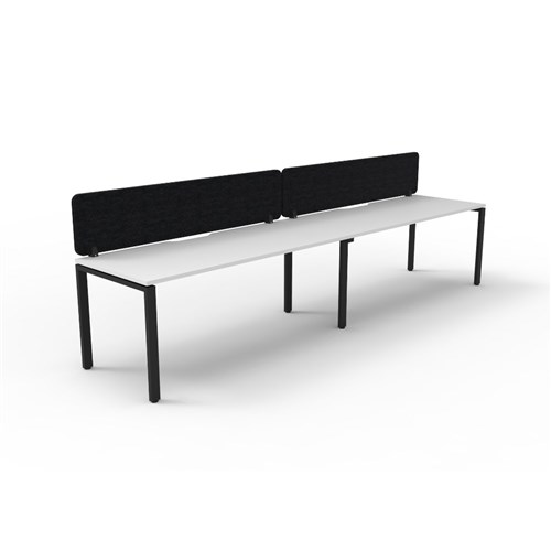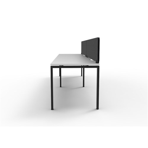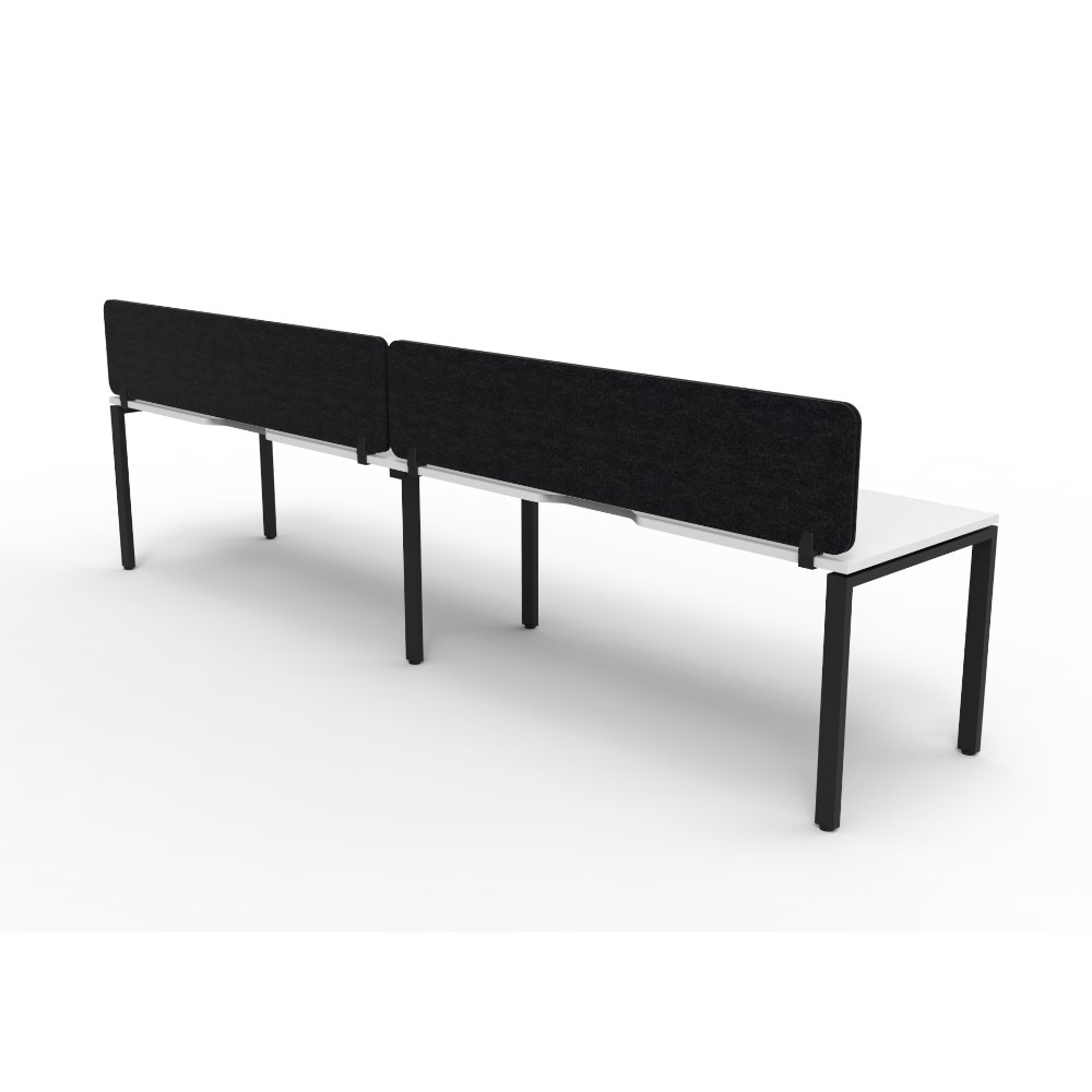 2 person single sided workstation with White top and Black Satin frame, Black Eco screen.