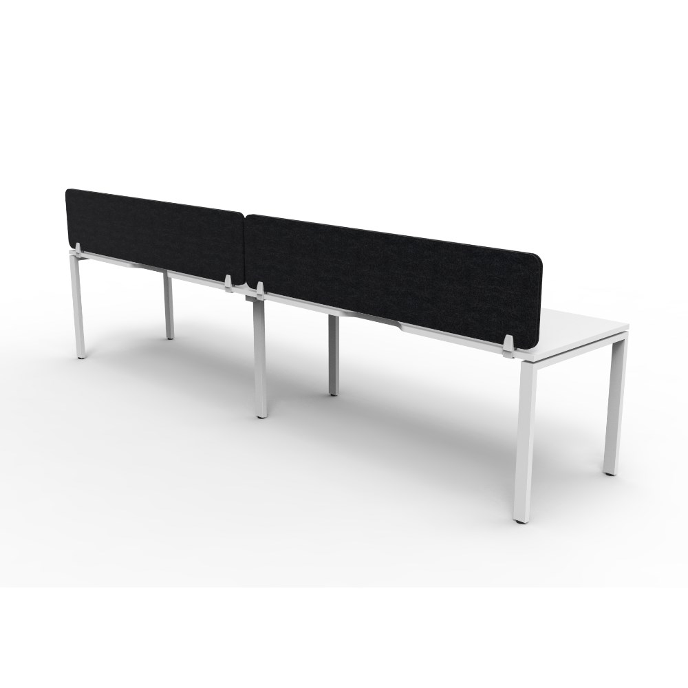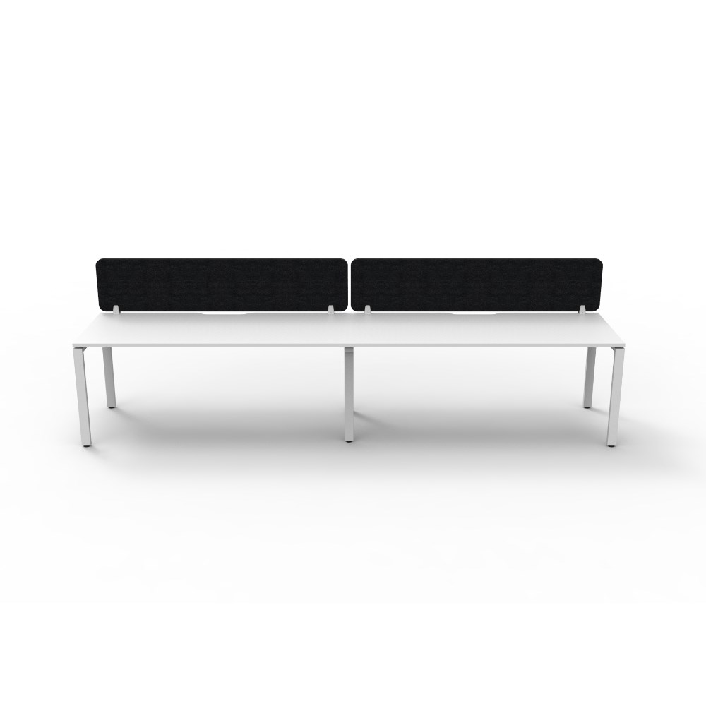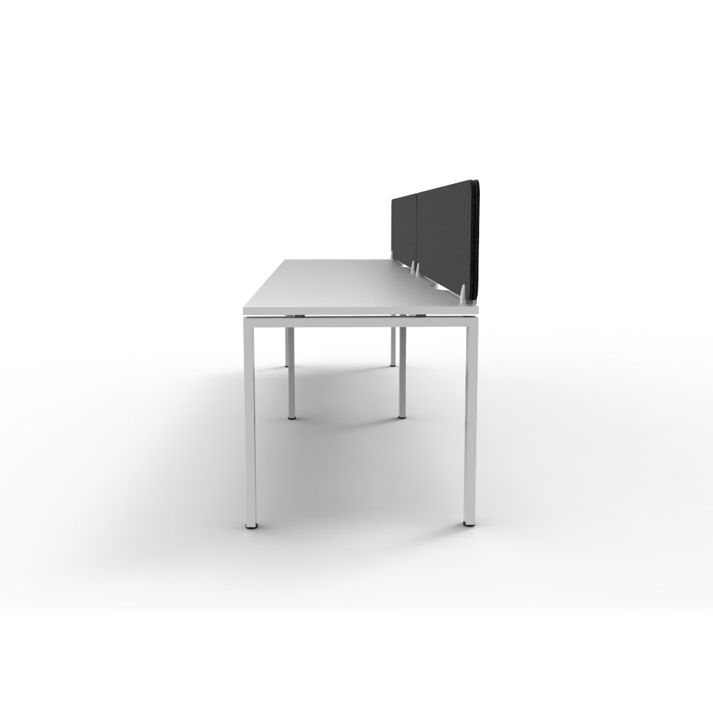2 person single sided workstation with White top and White Satin frame, Black Eco screen.