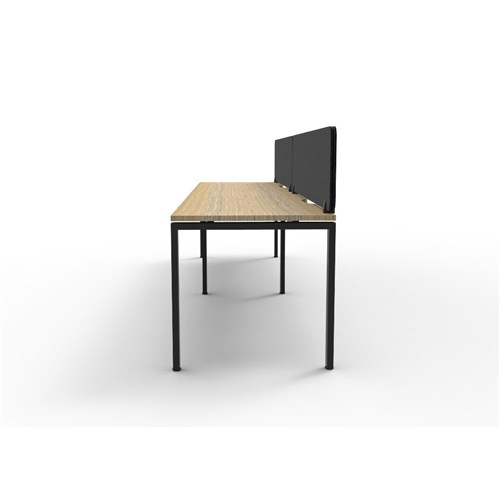 2 person single sided workstation with Natural Oak top and Black Satin frame, Black Eco screen.