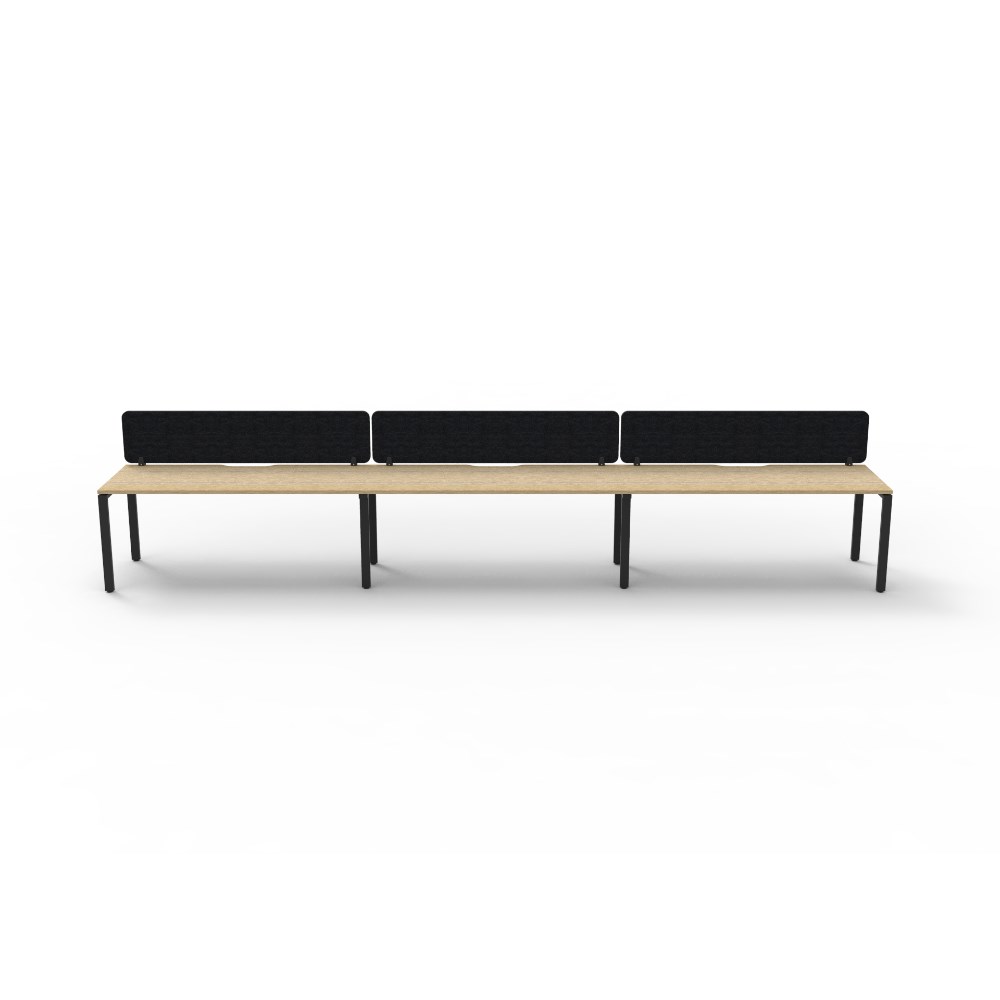 3 person single sided workstation with Natural Oak top and Black Satin frame, Black Eco screen.