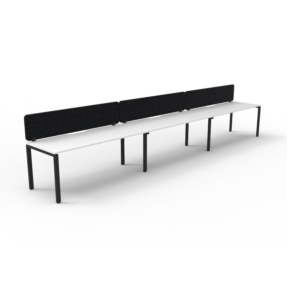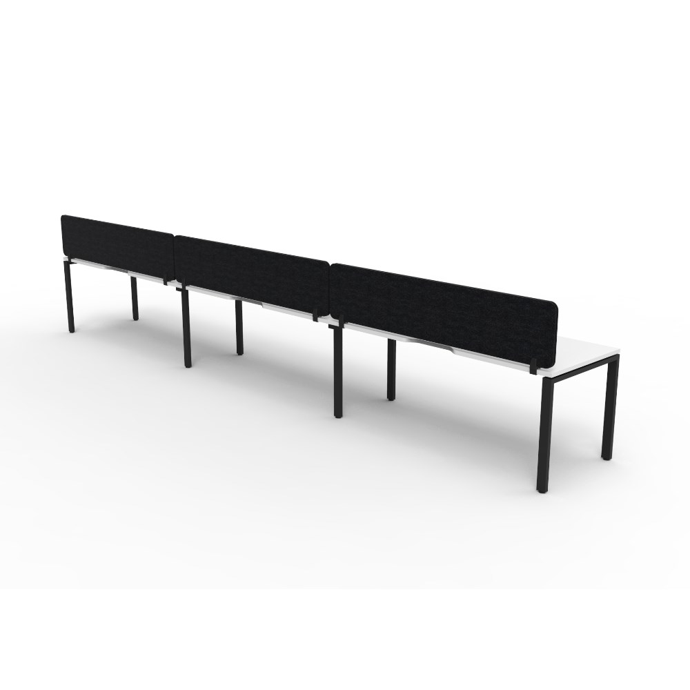 3 person single sided workstation with White top and Black Satin frame, Black Eco screen.