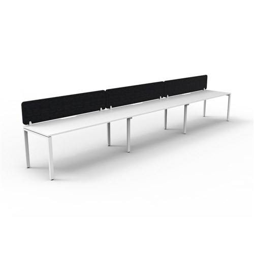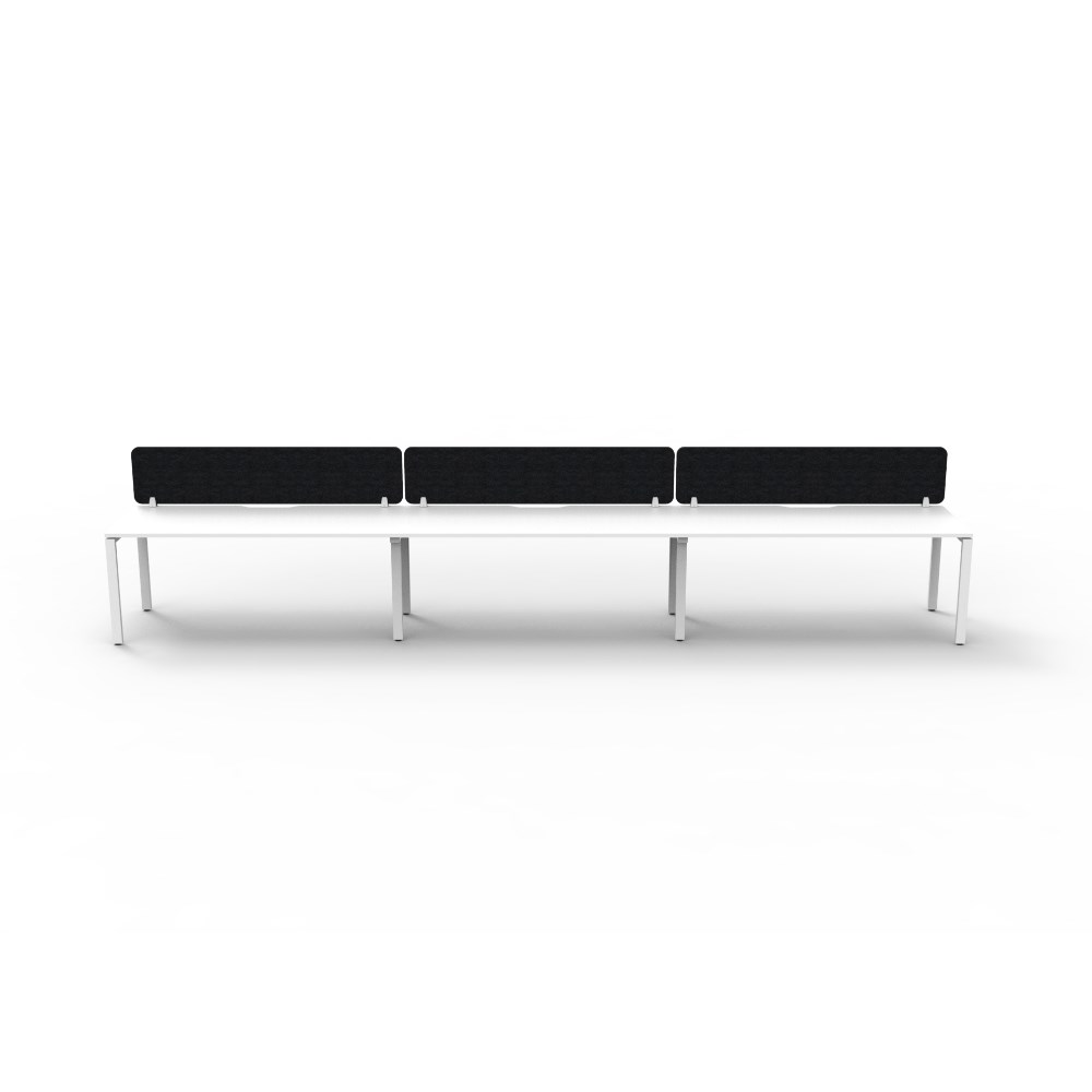 3 person single sided workstation with White top and White Satin frame, Black Eco screen.