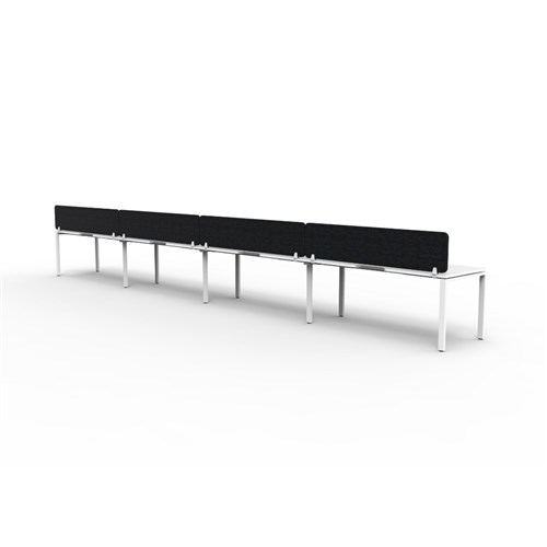 4 person single sided workstation with White top and White Satin frame, Black Eco screen.