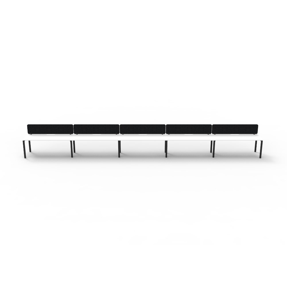 5 person single sided workstation with White top and Black Satin frame, Black Eco screen.