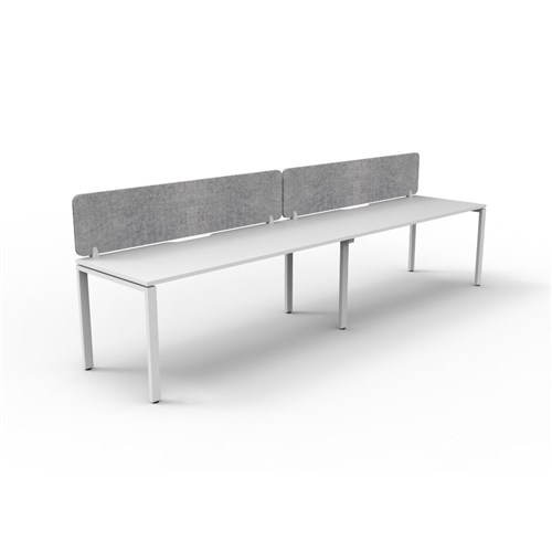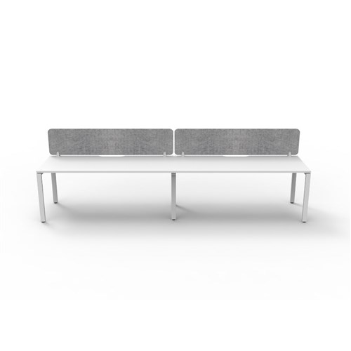 2 person single sided workstation with White top and White Satin frame, Grey Eco screen.