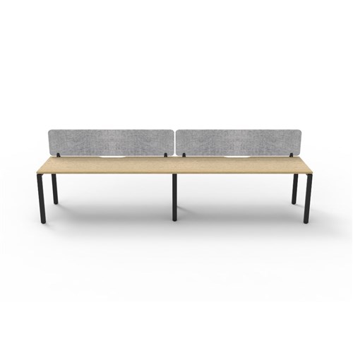 2 person single sided workstation with Natural Oak top and Black Satin frame, Grey Eco screen.