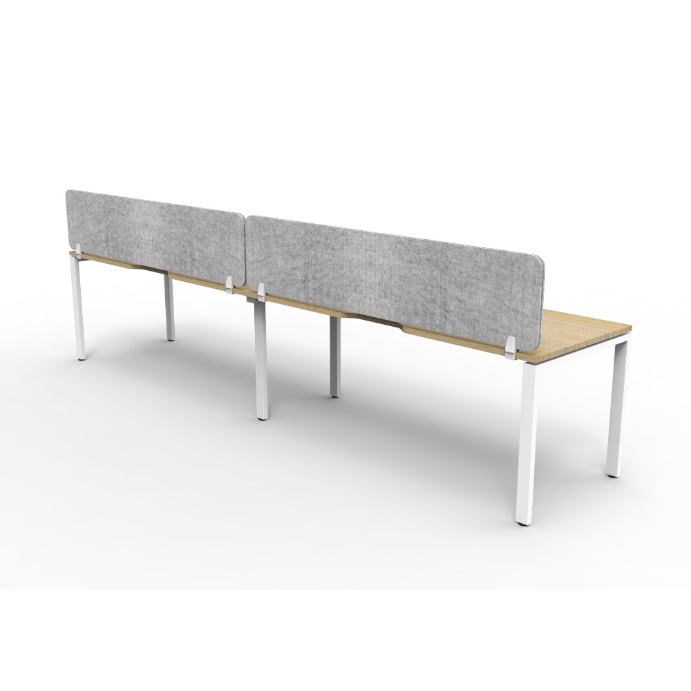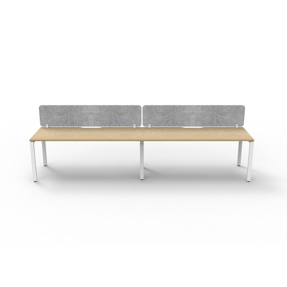 2 person single sided workstation with Natural Oak top and White Satin frame, Grey Eco screen.
