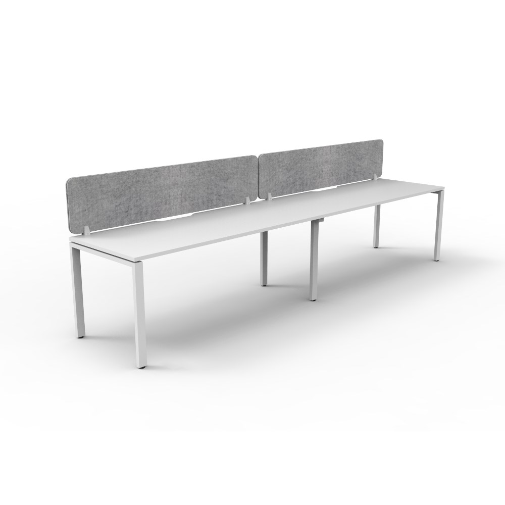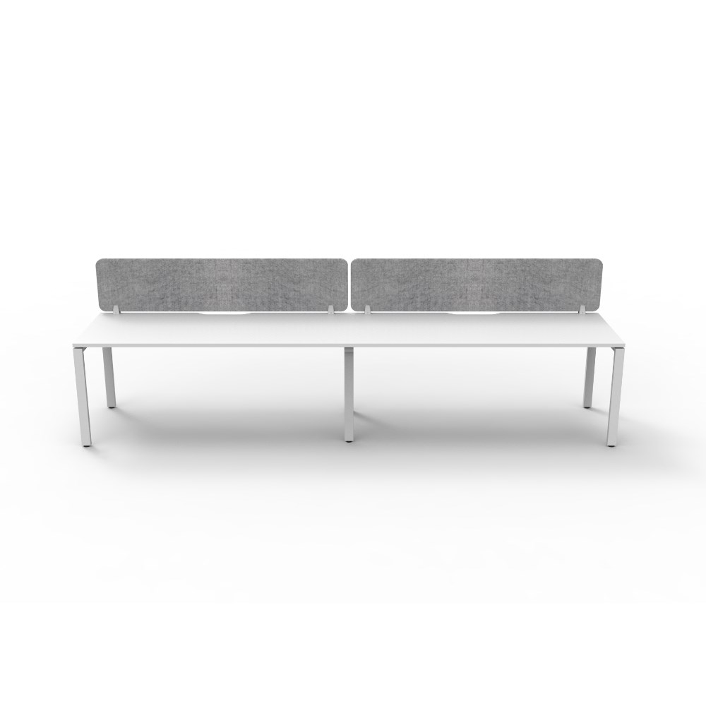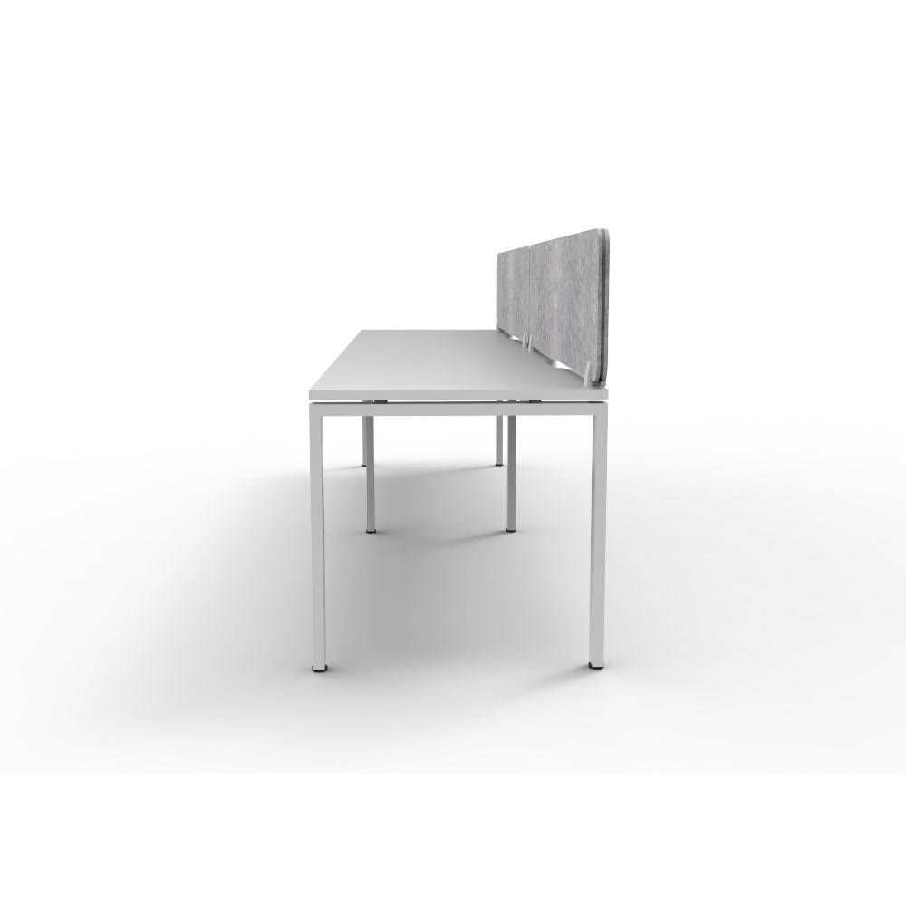 2 person single sided workstation with White top and White Satin frame, Grey Eco screen.