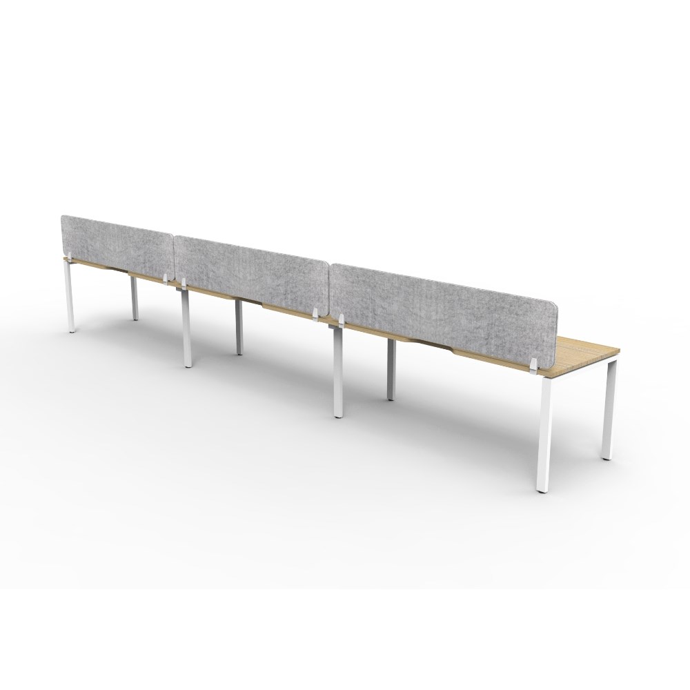 3 person single sided workstation with Natural Oak top and White Satin frame, Grey Eco screen.