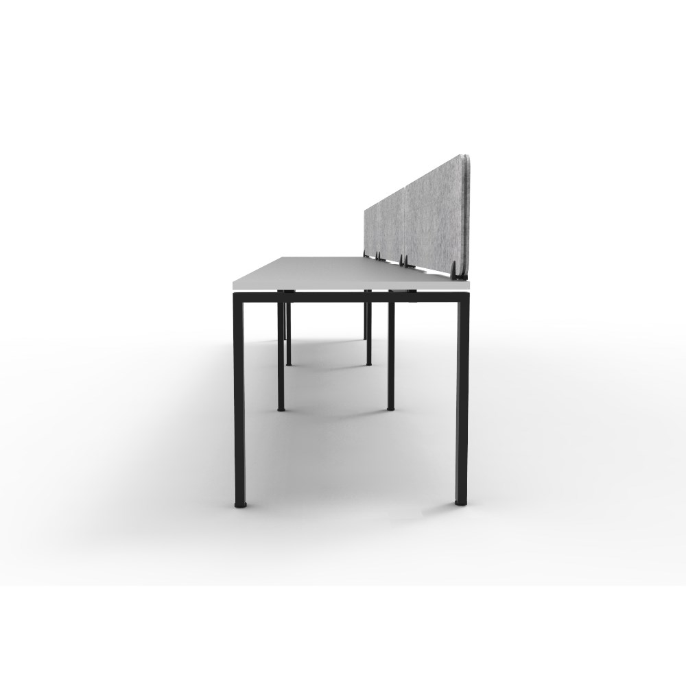 3 person single sided workstation with White top and Black Satin frame, Grey Eco screen.
