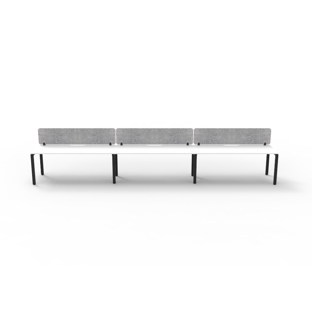 3 person single sided workstation with White top and Black Satin frame, Grey Eco screen.