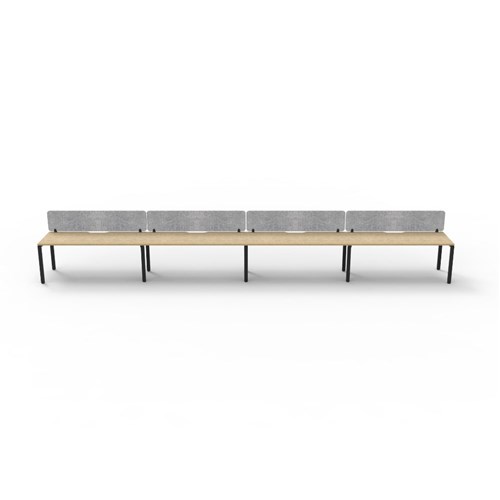 4 person single sided workstation with Natural Oak top and Black Satin frame, Grey Eco screen.