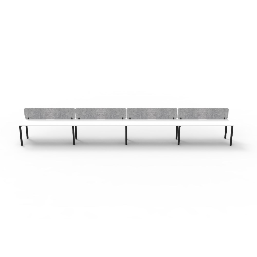 4 person single sided workstation with White top and Black Satin frame, Grey Eco screen.