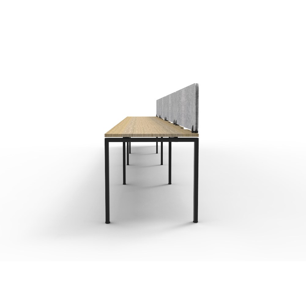 4 person single sided workstation with Natural Oak top and Black Satin frame, Grey Eco screen.