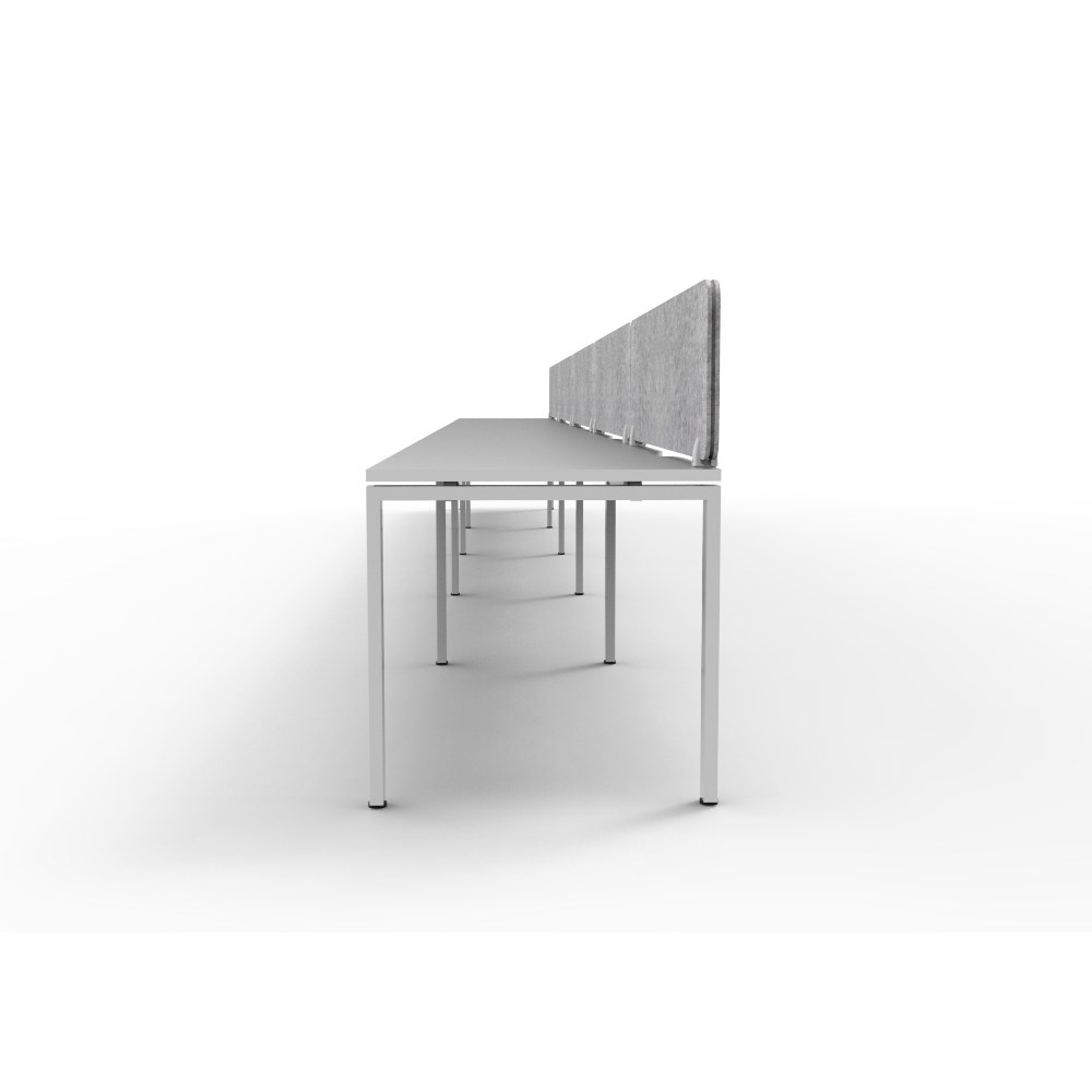 5 person single sided workstation with White top and White Satin frame, Grey Eco screen.