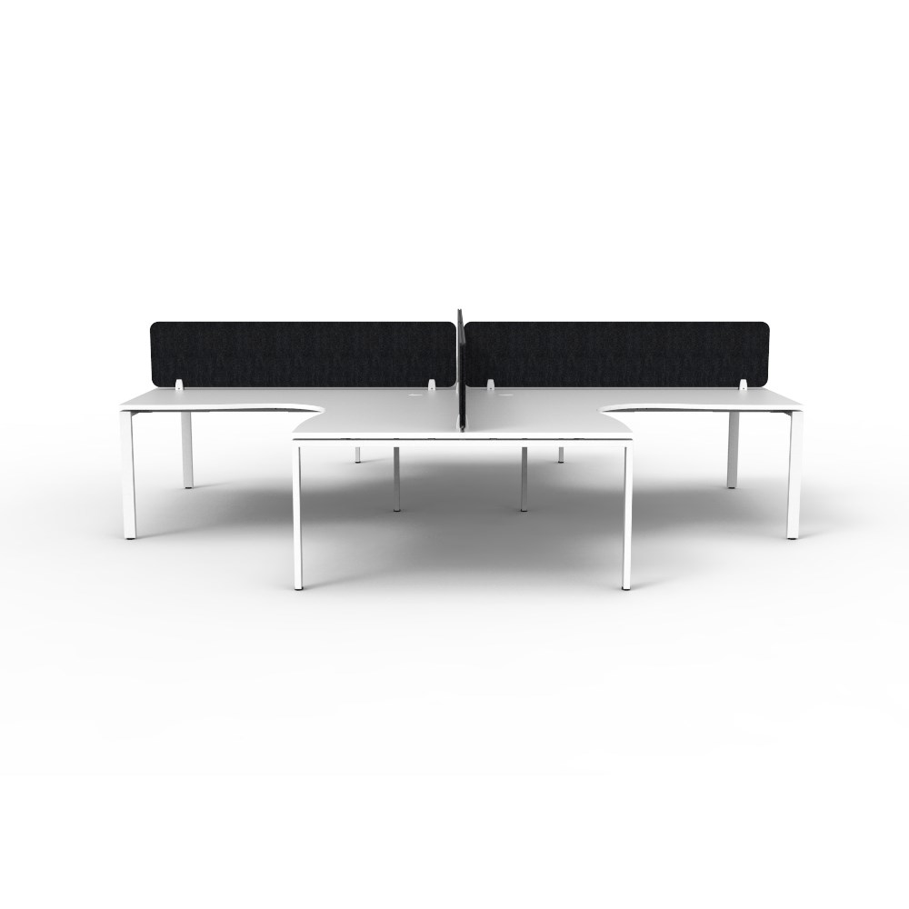 4 person corner workstation POD with White top and White Satin frame, Black Eco screen.