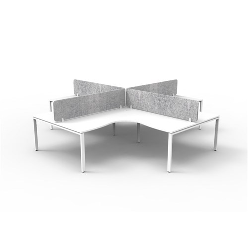 4 person corner workstation POD with White top and White Satin frame, Grey Eco screen.