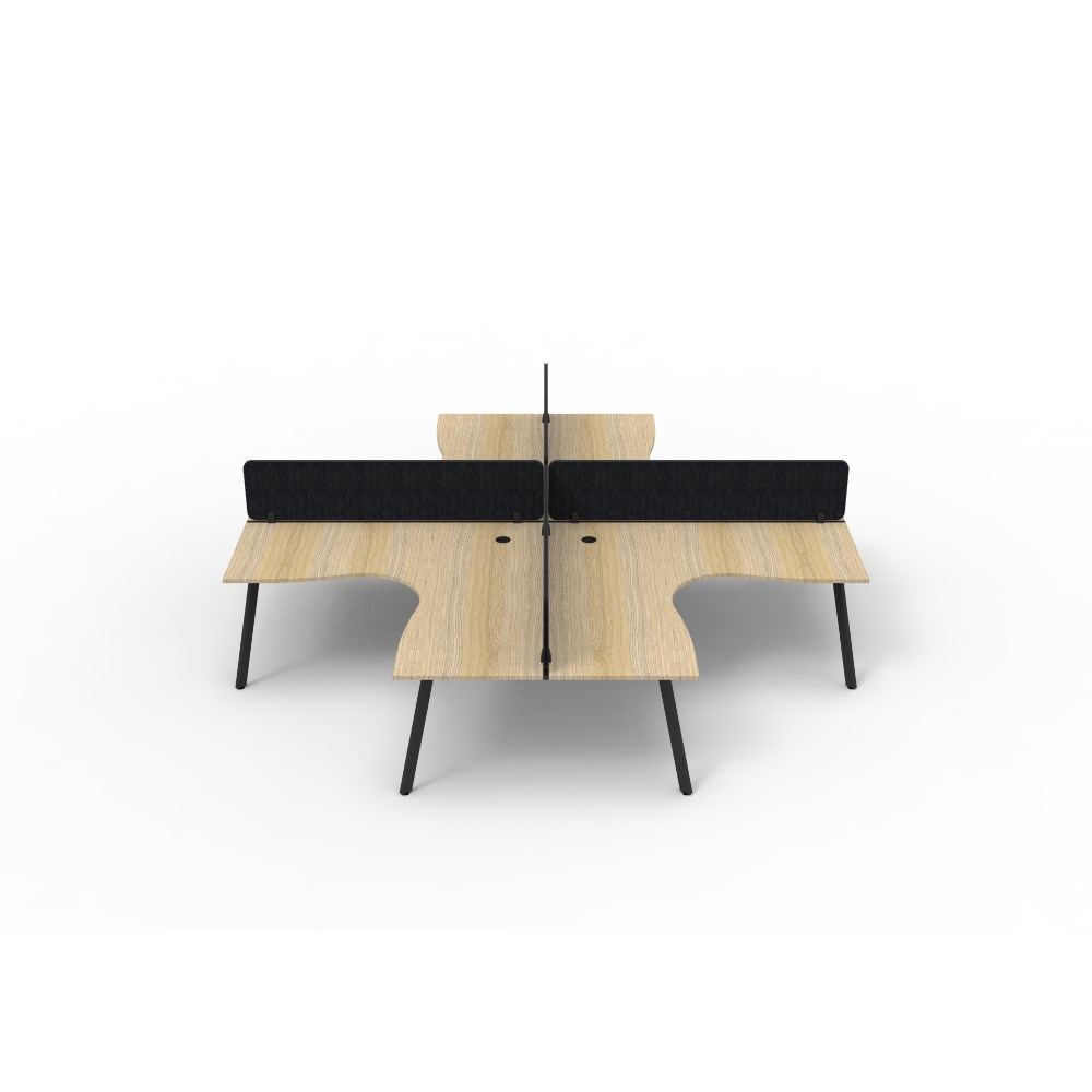 4 person corner workstation POD with Natural Oak top, Black Eco screen.