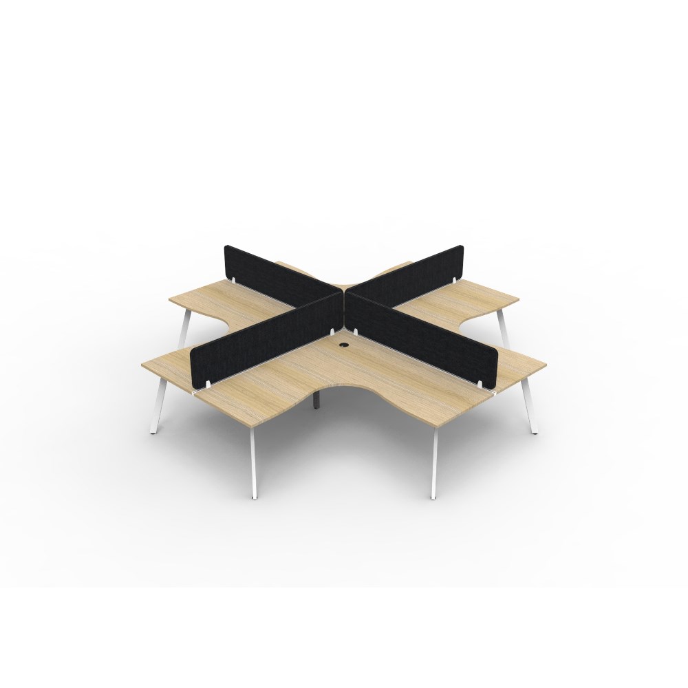 4 person corner workstation POD with Natural Oak top, Black Eco screen.