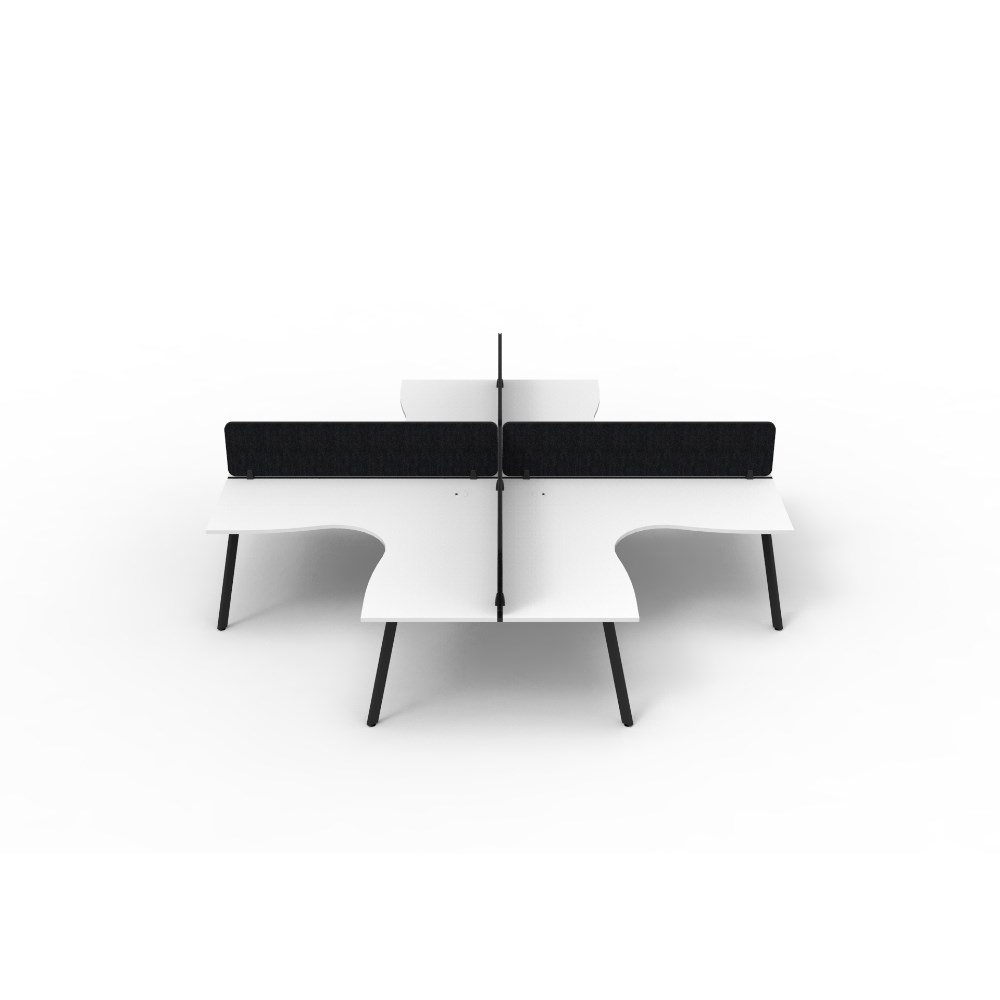 4 person corner workstation POD with Natural White top, Black Eco screen.
