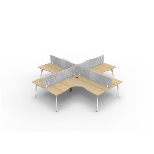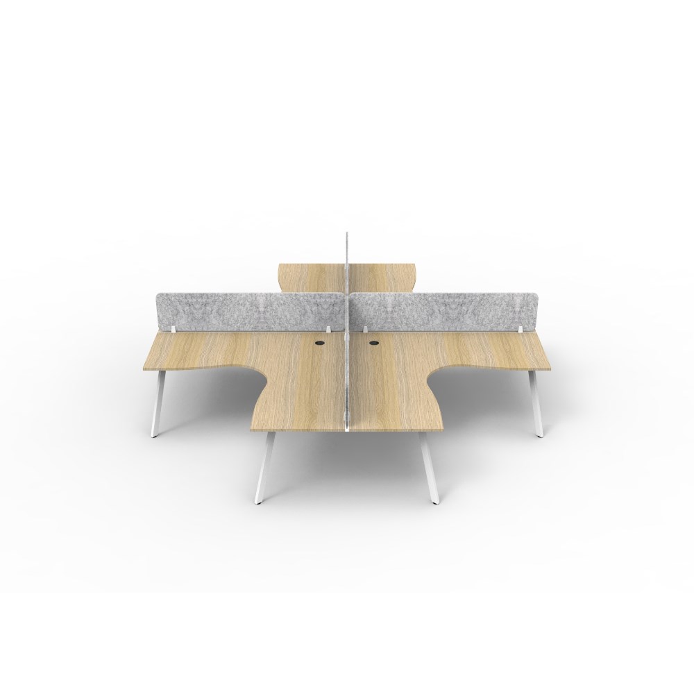 4 person corner workstation POD with Natural Oak top, Grey Eco screen.