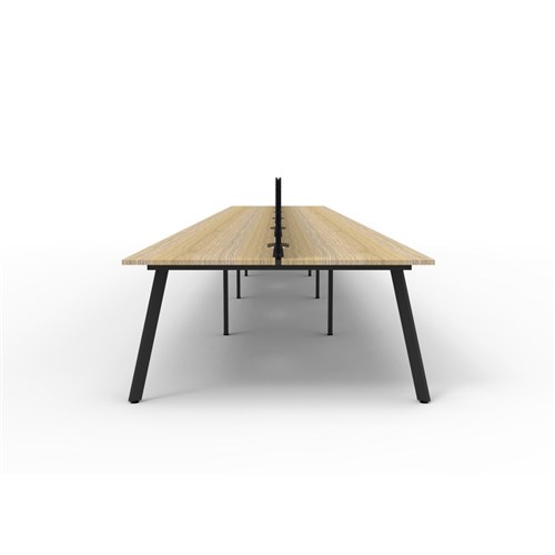 10 person double sided workstation with Natural Oak top and Black Satin frame, Black Eco screen.