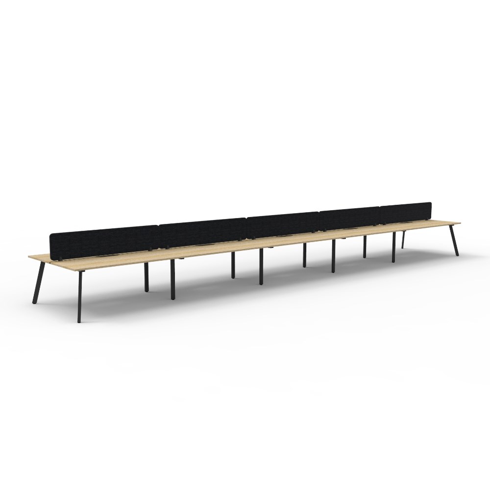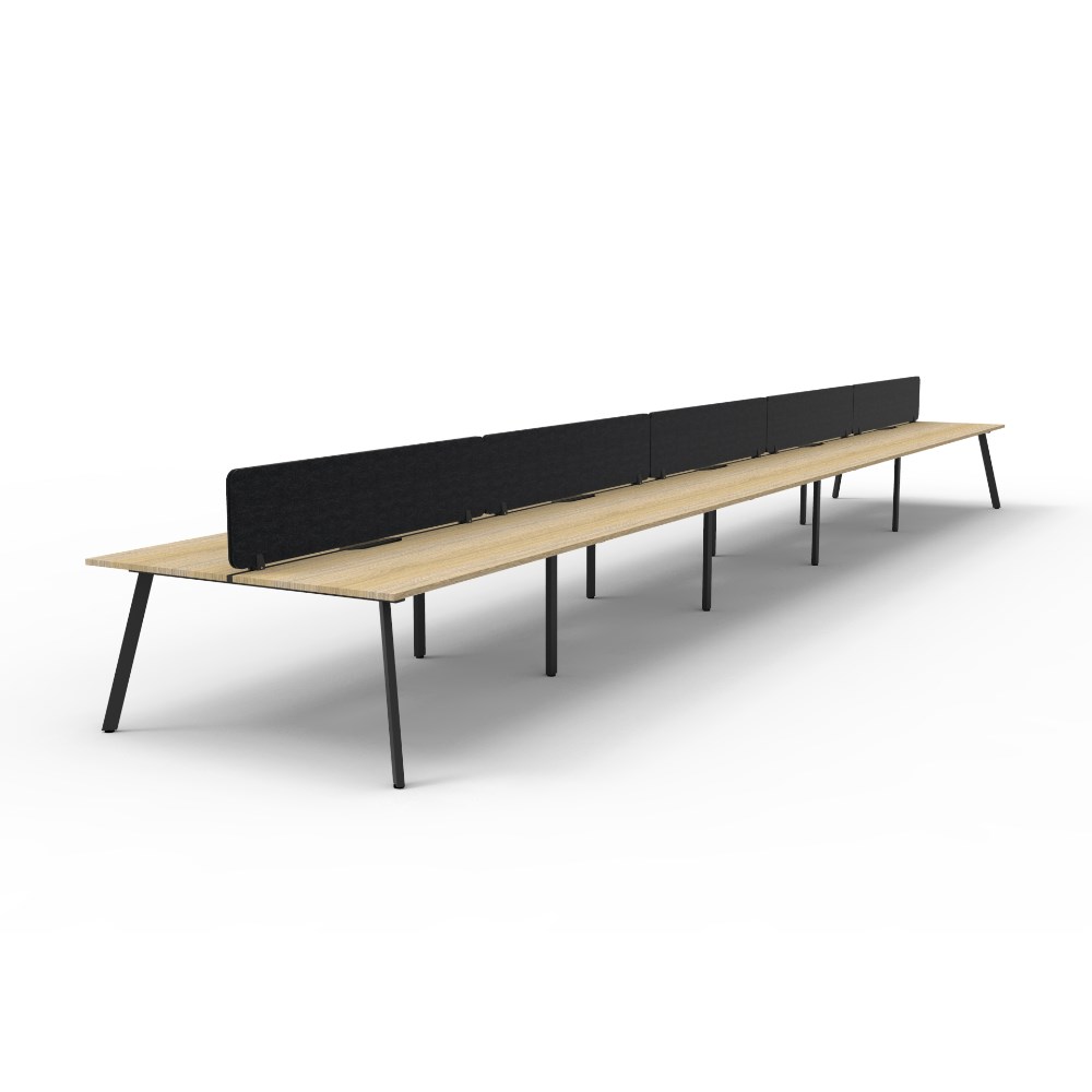 10 person double sided workstation with Natural Oak top and Black Satin frame, Black Eco screen.