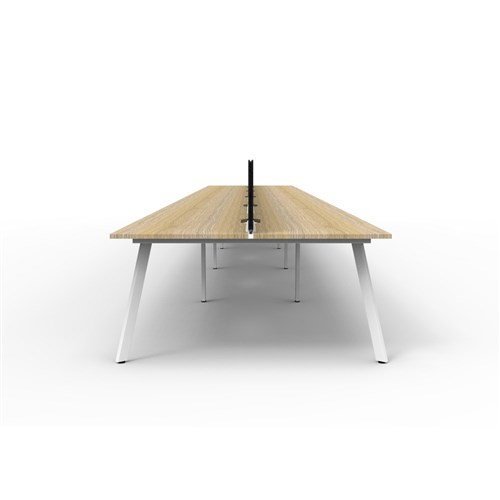 10 person double sided workstation with Natural Oak top and White Satin frame, Black Eco screen.