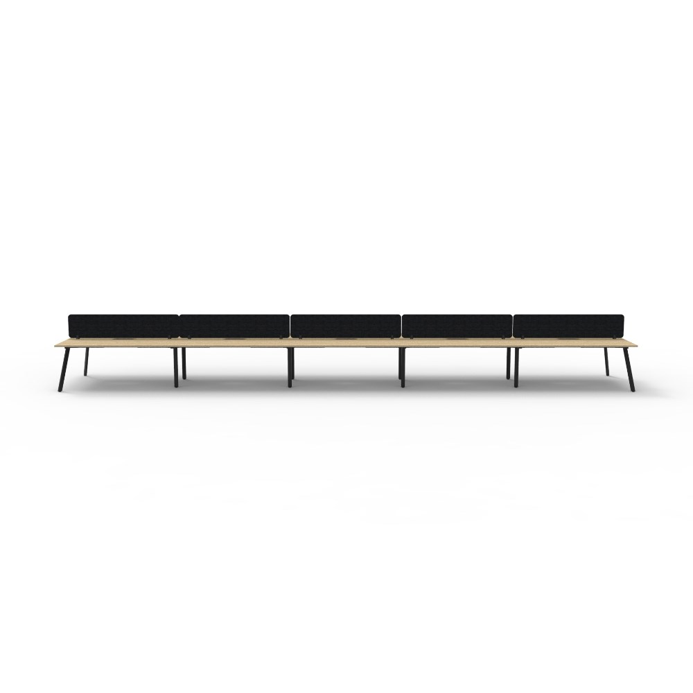 10 person double sided workstation with Natural Oak top and Black Satin frame, Black Eco screen.