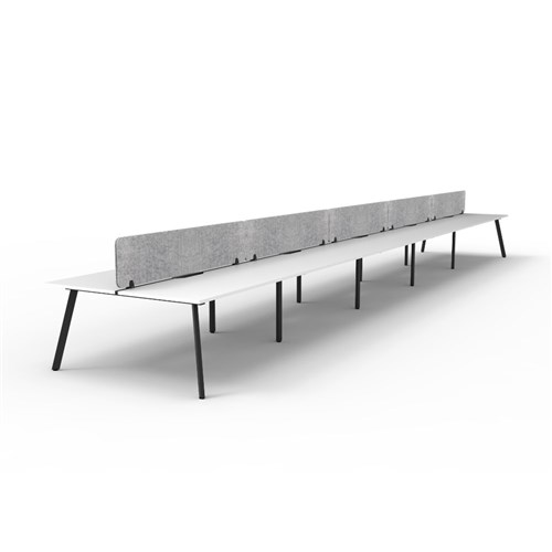 10 person double sided workstation with Natural White top and Black Satin frame, Grey Eco screen.