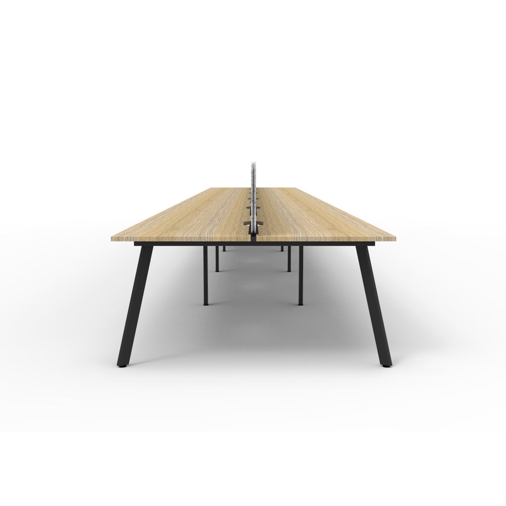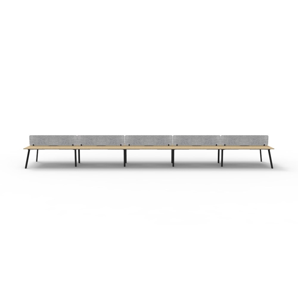 10 person double sided workstation with Natural Oak top and Black Satin frame, Grey Eco screen.