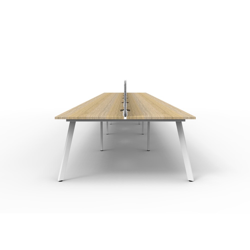 10 person double sided workstation with Natural Oak top and White Satin frame, Grey Eco screen.