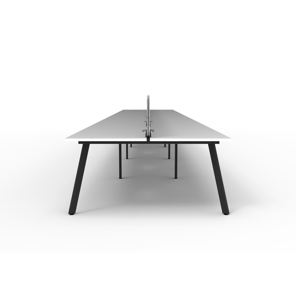 10 person double sided workstation with Natural White top and Black Satin frame, Grey Eco screen.