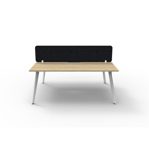 2 person double sided workstation with Natural Oak top and White Satin frame, Black Eco screen.