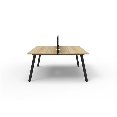 2 person double sided workstation with Natural Oak top and Black Satin frame, Black Eco screen.