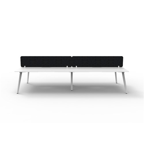 4 person double sided workstation with Natural White top and White Satin frame, Black Eco screen.
