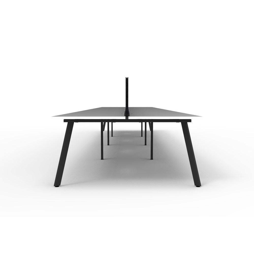 8 person double sided workstation with Natural White top and Black Satin frame, Black Eco screen.