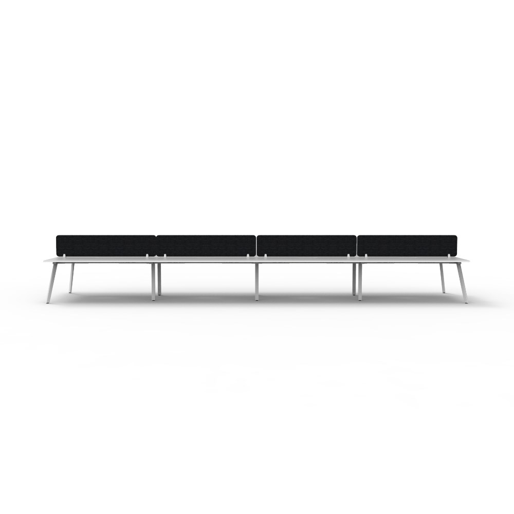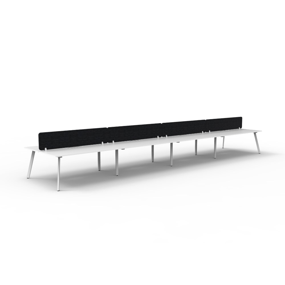 8 person double sided workstation with Natural White top and White Satin frame, Black Eco screen.