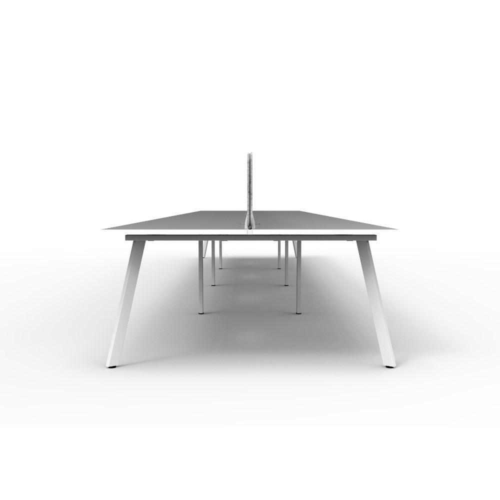 8 person double sided workstation with Natural White top and White Satin frame, Grey Eco screen.