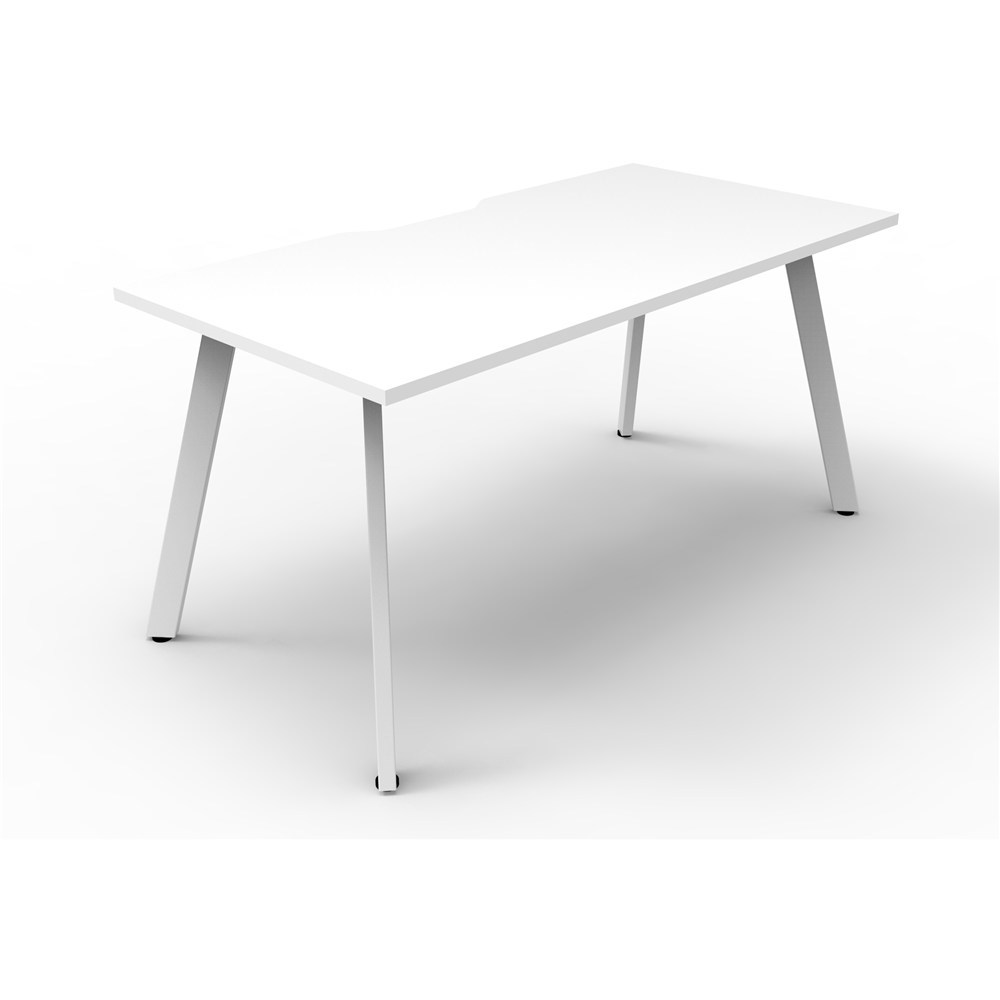 Natural White worksurface with 410mm W x 50mm D with white frame. Scallop cable access.