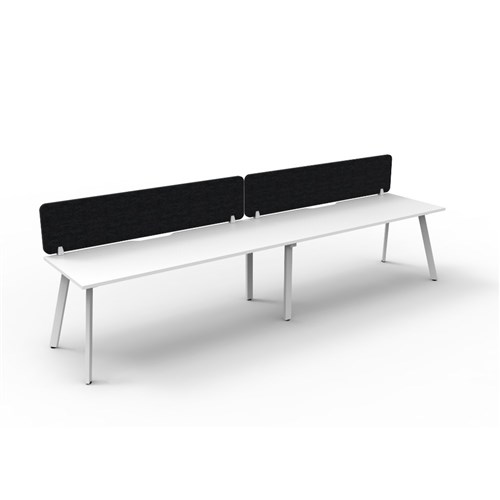 2 person single sided workstation with Natural White top and White Satin frame, Black Eco screen.