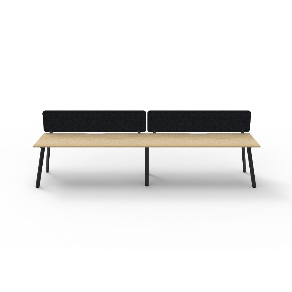 2 person single sided workstation with Natural Oak top and Black Satin frame, Black Eco screen.