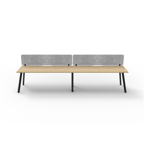2 person single sided workstation with Natural Oak top and Black Satin frame, Grey Eco screen.